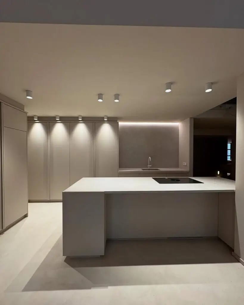 La distribución se organiza en torno a espacios amplios y conectados visualmente, donde la luz natural y la iluminación indirecta juegan un papel clave en la percepción del conjunto. El uso de materiales continuos, acabados neutros y mobiliario a medida aporta unidad y equilibrio, reforzando la sensación de orden y serenidad.